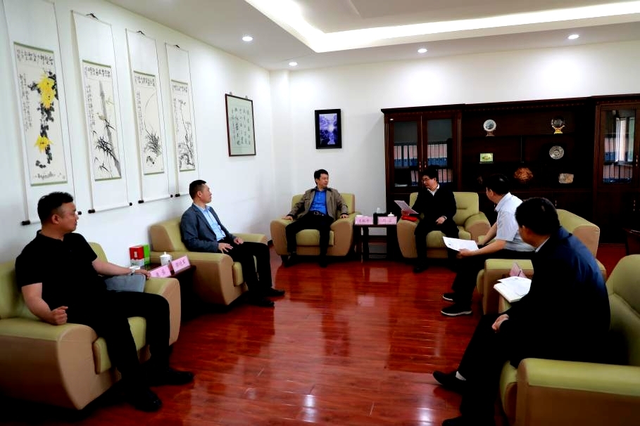 2024年5月11日上午,江苏汇博机器人有限公司总裁王振华一行3人到公司交流,董事长周震、组织人事部常务副部长宋伶英、公司党总支书记吴玉宁、副经理张彩芬参加交流会,会议由吴玉宁书记主持。